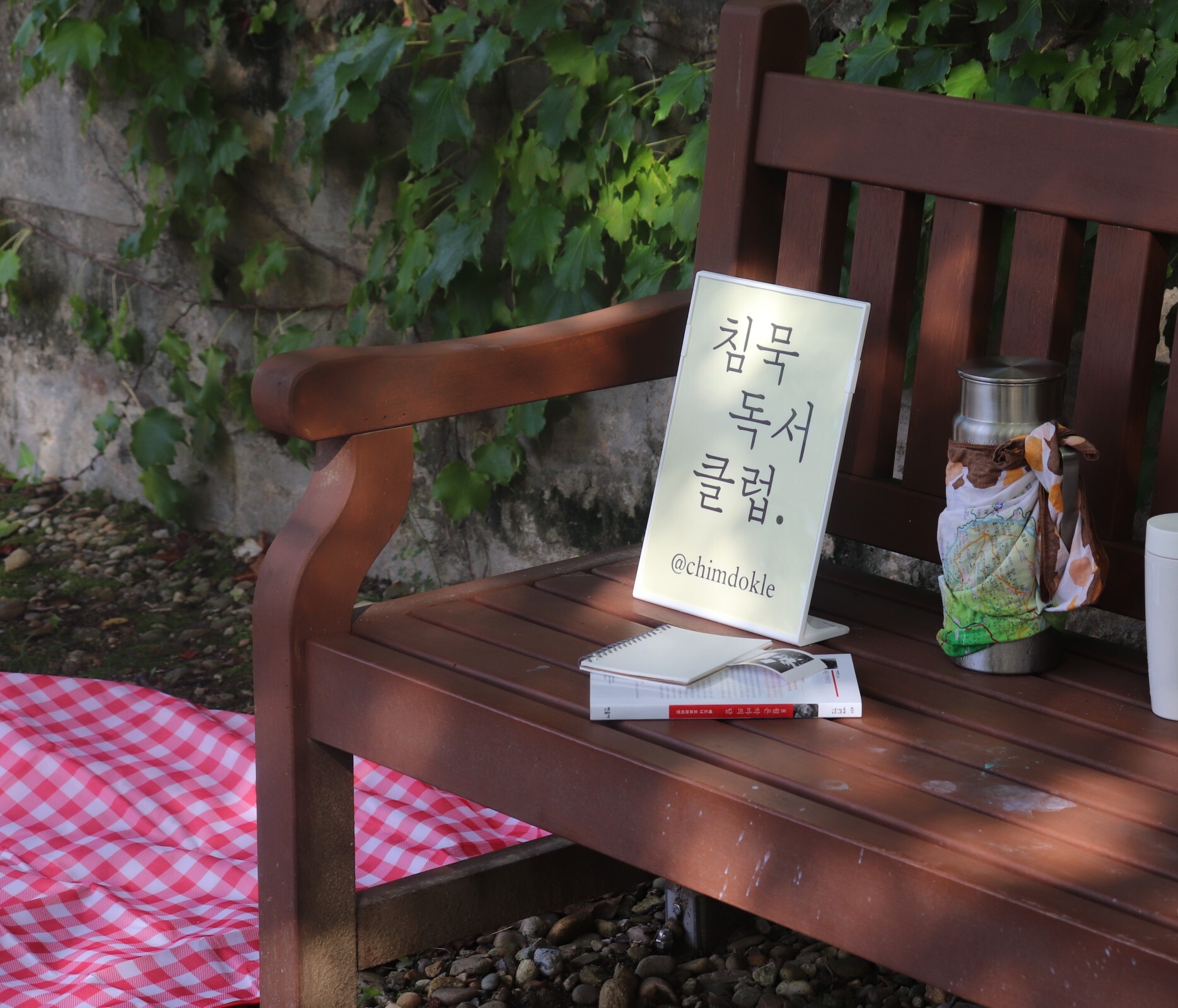 8월에 출발한 ‘침묵독서클럽’(@chimdokle)은 시간과 장소만 약속하고 어디선가 조용히 나타나서 모여 읽다가 또 조용히 흩어지는, 플래시몹 같기도 한 북클럽이에요. 공공 공간을 활용하고 있고, 가입 조건이 따로 없습니다. 읽을거리라면 꼭 종이책이 아니어도 돼요. 오셔서 스마트폰으로 웹소설을 읽는 분도 있고, 전공서를 가져오시는 분도 있어요. 다만, 서로 대화를 안 하고 오로지 읽다가 헤어지니, 침묵독서클럽 때문에 여기서 읽고 계신 건지, 아니면 다들 여기서 읽는 것 같기에 가까이 앉아 읽으시는 건지 알 수 없게 되기도 해요. 그렇게 경계 없고 조건 없는 연결이 이뤄지는 풍경 속에서 다들 가져온 책에 몰두하고 있어요. 실제로 침묵독서클럽에 오신 분들은 책을 읽어서 좋은 것만큼, 그런 느슨한 연결감을 좋아해 주시는 것 같아요. 누구든지 올 수 있는 공간에서 책 읽는 서로를 목격하는 이벤트를 더 많이 만나고 싶어요.