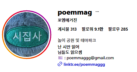 안녕하세요. 시와 사랑에 빠진 포엠매거진(@poemmag) 대표 배동훈입니다. 인스타그램에서 쉽고 간편하게 시를 소개하고 있습니다.