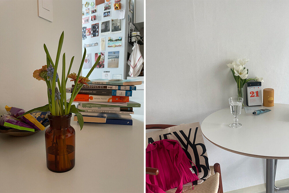 저에게는 식탁과 식탁의자가 반려 가구 같아요. 여러 시행착오 끝에 멋진 홈오피스를 차려놨다고 했지만 사실 집에서는 식탁 의자에 가장 오래 앉아 있어요. 식탁에서 유튜브도 보고, 밥도 먹고, 원고 작업도 합니다. 그것도 의자 위로 다리를 올려 양 무릎을 가슴 가까이 끌어당긴 자세로요. 허리에 진짜 안 좋은 자세라는데, 좁은 식탁 의자에 몸을 한껏 구겨넣은 채로 골몰하는 게 오히려 집중도 잘 되고 몸에도 익어요. 바른 자세를 잡게 도와준다는 비싼 사무용 의자를 놔두고 왜 자꾸 이 모양으로 앉아 있는지…