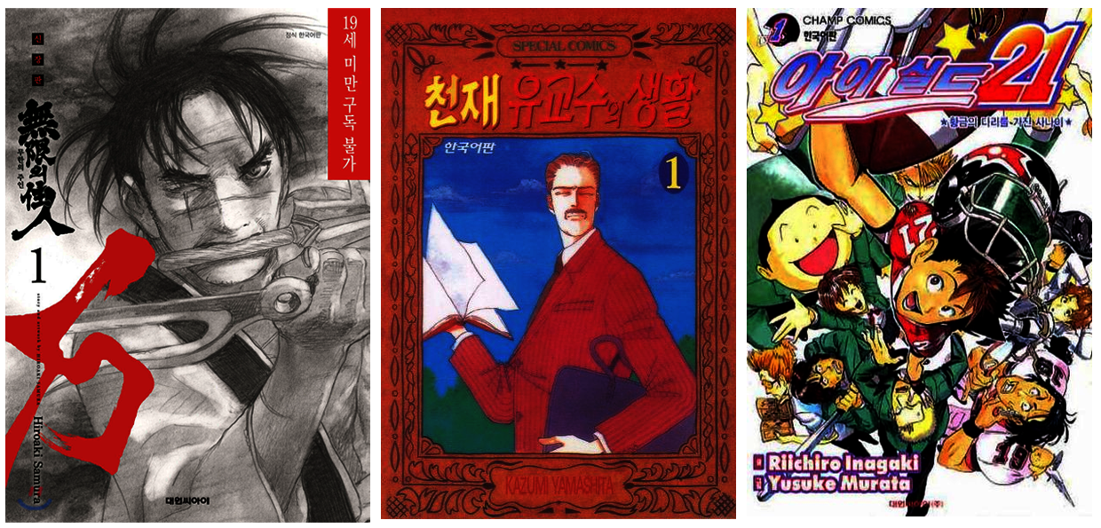 올해 그렇게 읽은 장편만화 중 인상 깊은 것은 『무한의 주인』, 『천재 유교수의 생활』, 『아이실드21』이 있다. 『무한의 주인』은 아버지의 복수를 위해 막강한 검객 아노츠를 죽이기로 결심한 소녀 린과 그녀의 경호원이자, 아빠이자, 오빠이자, 연인인 한 남자 만지의 여정을 그린 복수극이다. 내가 올해 읽은 작품 중에 가장 재밌는 작품이고 이 만화를 읽은 것이 올해 내가 가장 잘한 행동이기도 하다. 정말 재밌었다. 『무한의 주인』을 읽는 동안에는 어떤 약속도 안 잡았다. 만지와 린과 함께 여정을 떠난 나의 고결한(과몰입 중인) 정신을 흩트리고 싶지 않았다. 일상에서, 직장에서 아무리 힘들어도 집에 가면 아직 안 읽은 『무한의 주인』이 나를 기다리고 있다는 생각으로 버티며 정신을 차릴 수 있었다. 퇴근 후엔 (난폭 운전하는 전재준처럼) 한시 바삐 귀가해 몸을 깨끗이 한 후 정화된 마음가짐으로 책장을 펼치곤 했다. 길고 긴 복수의 끝에는 무엇이 있을까? 그 여정을 좇다 보면 다소 예상할 수 있는 결말에 도착했음에도, 끊어야만 풀리고 마는 원한의 굴레를 끊고 난 뒤 인간에게 어떤 의미가 남는지 알 수 있게 된다. 아니, 느낄 수 있게 된다. (여담으로 이 만화의 마가츠라는 캐릭터를 본 후 『나루토』의 사스케 초기 원안을 찾아보기를. 웃음이 나올 정도로 닮아 있다.)