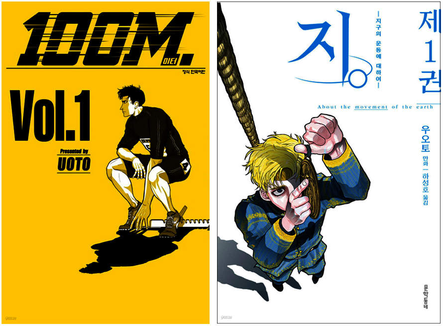 장편 말고도 여러 만화를 보았다. 우오토 작가의 『100미터』가 인상 깊었다. 인생의 대부분의 문제는 100m를 누구보다 빨리 달리면 해결된다고 생각하는 두 소년이 어른이 되기까지를 그리며 그들이 왜 달려야 하는지, 평생을 달려왔는데 그 달리기에 무슨 의미가 있는지에 대해 고민하는 이야기다. 육상을 소재로 하지만 스포츠물처럼 진지한 훈련 장면 같은 건 거의 나오지 않고 오히려 철학적인 만화에 가깝다. 작중에서 일본 최고 기록을 가진 선수 자이츠가 했던 말이 내게 큰 위로가 되었다. “불안은 대처해야 할 대상이 아니다. 인생은 항상 상실의 가능성으로 가득 차 있다. 거기에 생명의 묘미가 있지.” 막막하고 흔들릴 때마다 생각하고 싶은 대사다. 어떻게 보면 인생과 ‘살아 있음’을 순전히 즐기라는 아주 명쾌한 말인 것 같기도 하다. 『지.-지구의 운동에 대하여-』를 교차 편집할 때만 해도 ‘이게 만화야, 잠언집이야’ 하는 생각으로 이 작가를 이렇게 좋아하게 될 거라곤 생각 못 했는데 어느덧 그의 작품은 물론 작가까지도 좋아하게 됐다. 우리의 인생에 아무 의미가 없다면 무엇을 위해 어떻게 살아야 하는지를 이야기하는 건 굉장히… 따뜻한 일이라고 생각했기 때문이다. 그런 따뜻한 사람을 좋아하지 않을 수가 있나.