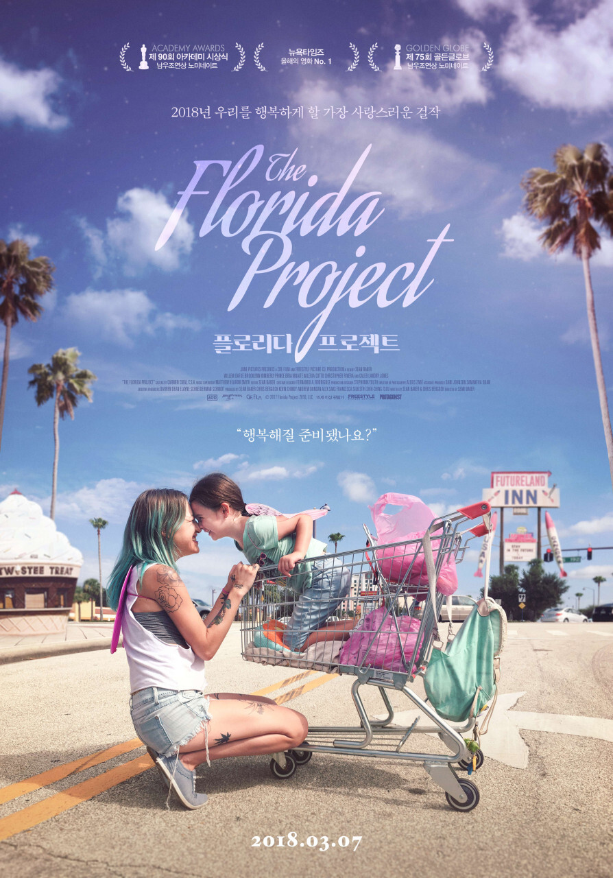 아이를 별로 좋아하지 않는 편이라고 여기고 있다. 사람의 순수와 제어되지 않는 미숙과 쉽게 끓고 부서지는 생명의 열기를 어떻게 다뤄야 할지 몰라서 피하는 쪽에 가깝다. 흥미는 있으나 어려워서 좋아하기 힘든 대수학 같은 것이다. 아이라는 상태만큼, 사람의 이쪽과 저쪽이 가깝게 붙고 뒤섞이는 상태는 없을 것이다. 분명 나 역시 지나온 유년일 텐데, 어쩐지 유년은 내게 밀봉하고 치워버리고 싶은 기분을 주곤 한다. 어둡고 가학적인 세상에 아이가 고립되는 영화나 소설을 보면 도중에 덮어버리고 싶다. 불쾌감 이전에 어떤 두려움이 끈적하게 고이기 때문이다. 그런 점에서 2018년 한국에 개봉한 션 베이커 감독의 영화 <플로리다 프로젝트>는 미리 정보를 알았다면 선뜻 보지 않았을 작품이었다. 포스터에 속았다. 파스텔톤 연보랏빛 밝고 화창한 건물 앞에서 해맑게 뛰어다니는 아이들을 세워놓고 ‘우리를 행복하게 할 가장 사랑스러운 걸작’, ‘디즈니월드 보다 신나는 무지개 어드벤처’라니. 포스터에 속는 순간부터가 이 영화의 설계라면 나는 하수임이 틀림없었다.