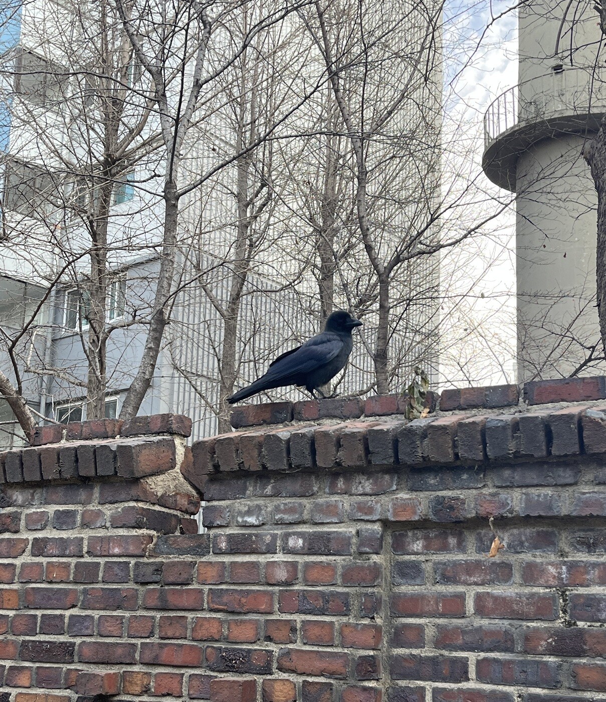 벽돌담 위의 까마귀