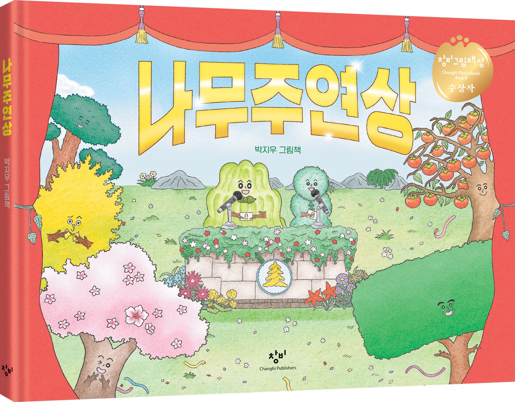 안녕하세요! 『나무주연상』을 쓰고 그린 박지우입니다. 이 책은 사계절 동안 부지런하고 조용히 수고해 온 나무들에게 박수 쳐 주고, 따뜻한 축하를 전하는 시상식 이야기로 전개됩니다. 과연 어떤 나무가 상을 받게 될지 상상해 보며 읽는 재미가 있는 책입니다.
